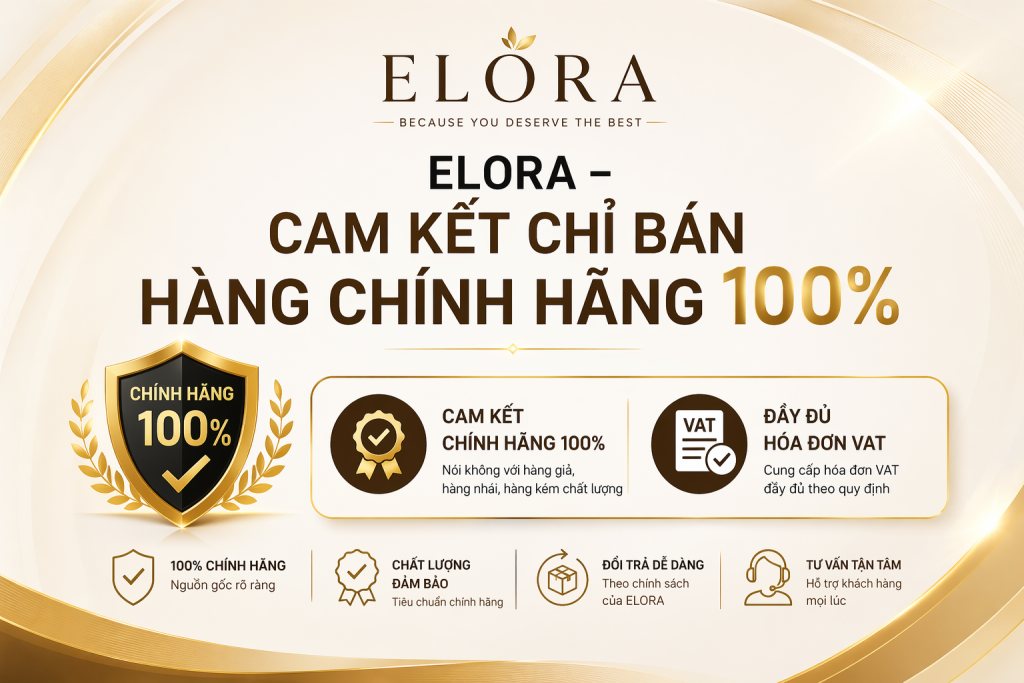 Toàn bộ sản phẩm tại Elora đều được nhập trực tiếp từ nhà phân phối uy tín, có nguồn gốc rõ ràng, nói không với hàng giả – hàng kém chất lượng.